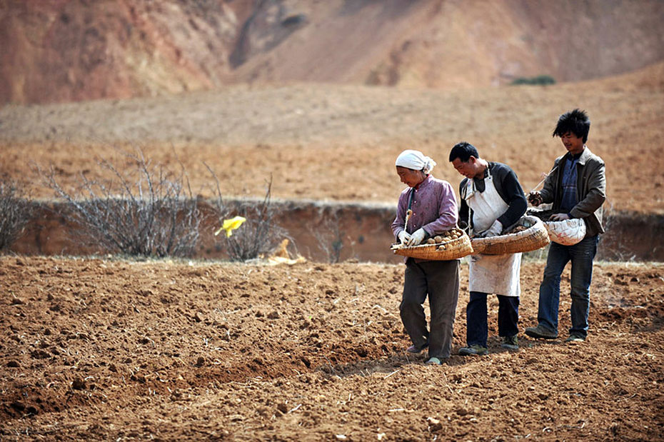 貴州威寧縣斗古鄉中關村村民在積極備耕,播種抗旱作物(3月13日攝)。圖片來源:新華網 歐東衢 攝