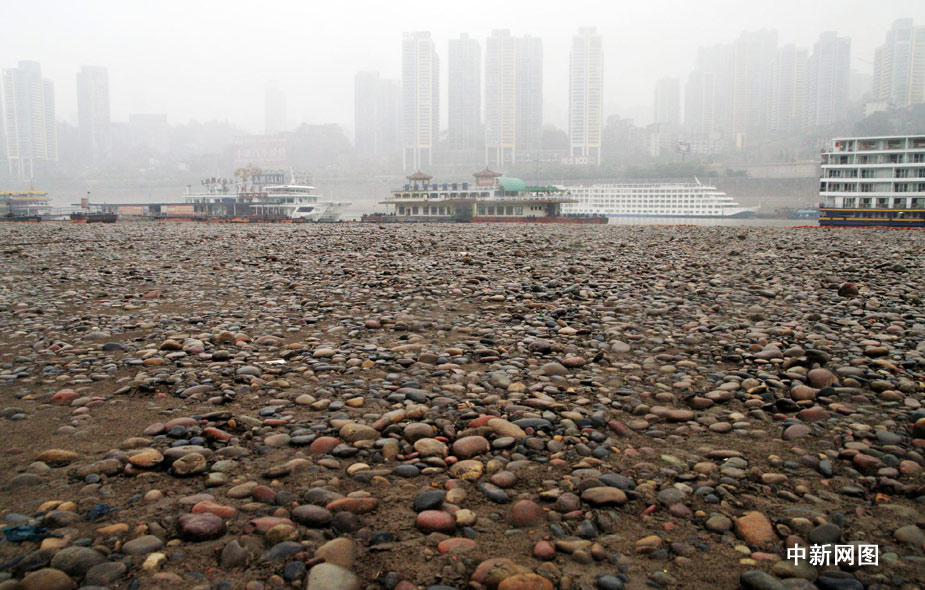 中新網(wǎng)重慶3月23日電 受去冬今春西南地區(qū)干旱影響,長江、嘉陵江重慶段水位持續(xù)下降。3月23日,記者在重慶市朝天門嘉陵江與長江交匯處看到,大面積河床裸露出來,部分水段已見底。據(jù)相關(guān)部門通報,截止3月22日,長江重慶段水位退落至0.31米,比去年同期低了近2米。孟幻 攝