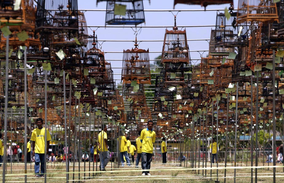 3月24日,一場“鳥兒唱歌”大賽在泰國南部的那拉提瓦府舉行。圖片來源:中國新聞網(wǎng)