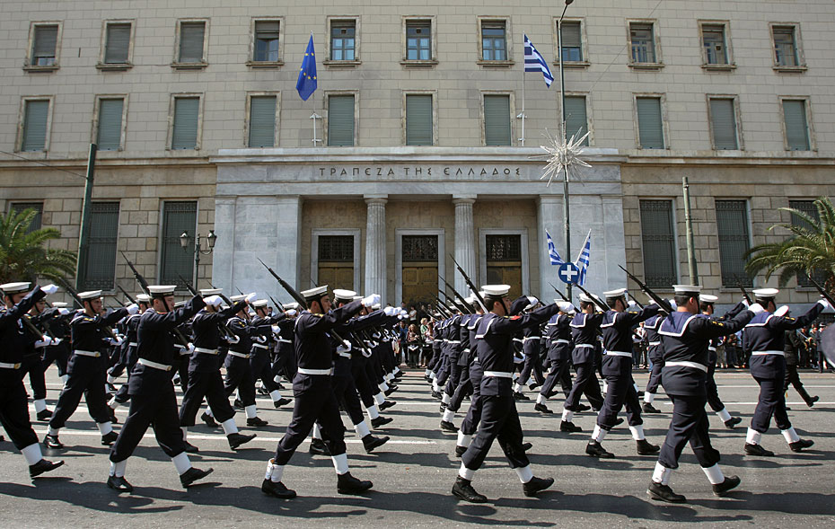 3月25日,在希臘首都雅典的憲法廣場,人們參加獨立戰爭紀念日慶祝活動。圖片來源:中國新聞網