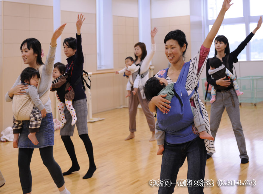 3月24日,在日本橫濱市的一堂母嬰桑巴課上,媽媽們帶著自己的寶寶一起參加舞蹈訓練。 凡是孩子年齡在三個月到兩歲之間的母親都可以到這里參加母嬰舞蹈課,課程包括桑巴、華爾茲、布魯斯等。圖片來源:中國新聞網>>點擊觀看詳細內容