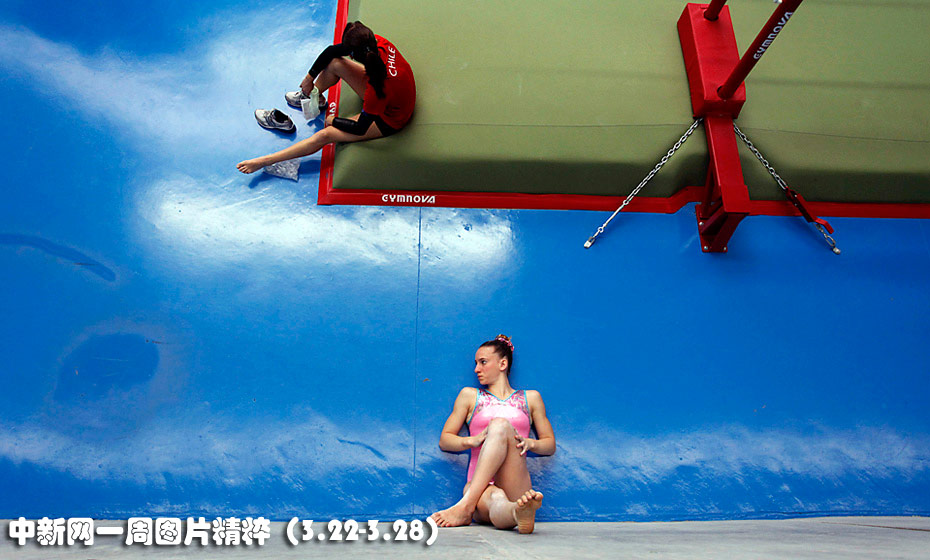 3月24日,阿根廷運(yùn)動(dòng)員佩雷拉在比賽間隙靠墻拉伸雙腿。