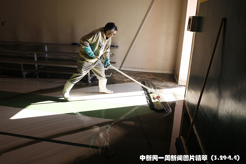 周五(2日),美國羅得島州東部的城市克蘭斯頓遭遇洪水襲擊。圖為工作人員正在清理積水。