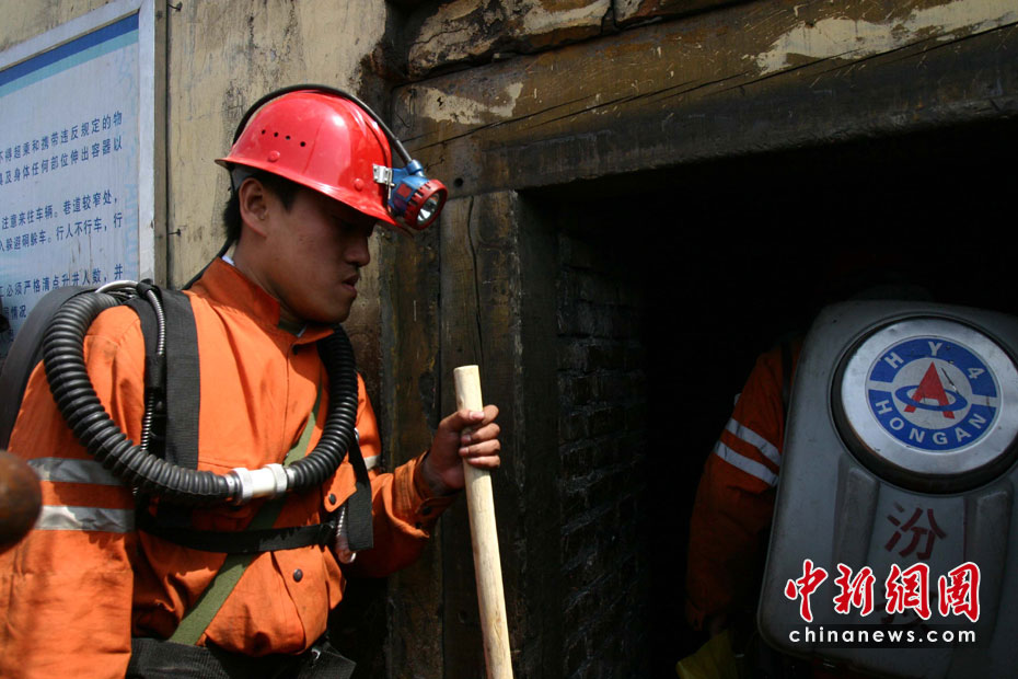 4月3日,華晉焦煤公司王家嶺礦透水事故第七天。下午1時許,汾西礦山大隊7名隊員與鄉寧救護隊6名隊員一共13名搜救隊員攜帶各種急救設備配合潛水員下井進行搜救。搜救隊員在接受記者采訪時,介紹他們主要工作是配合潛水員搜救,并保護潛水員,發現被困人員時,緊急救援并通知井上人員進行救治,急救車已在離井口30米處待命。中新社發 張云 攝