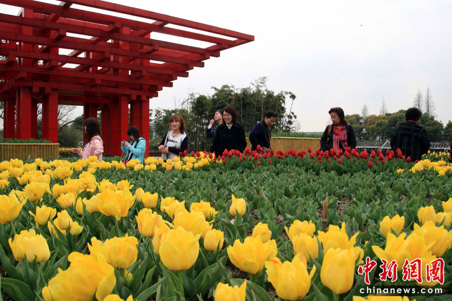 4月4日,以“世博‘卉’,匯世界花卉”為主題的2010上海花展,吸引數(shù)萬上海市民踏青觀賞,上海世博會中國館為主體的花卉景點,成花展最大亮點。來自13個舉辦過世博會的國家和100多個上海世博會參展國的國樹、國花齊聚花展。中新社發(fā) 潘索菲 攝