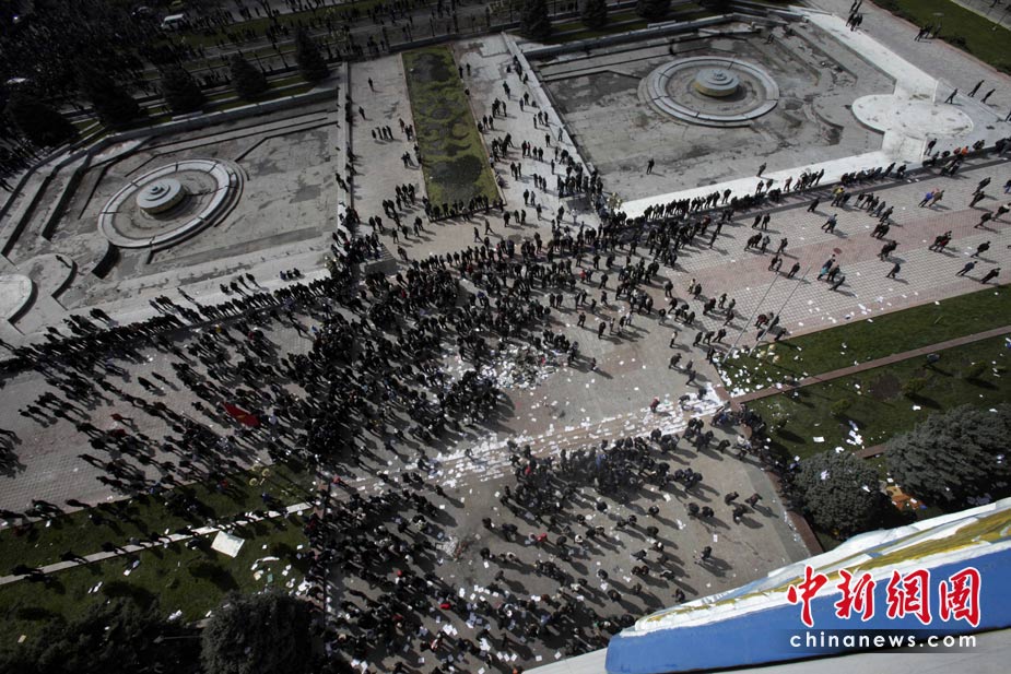 吉爾吉斯斯坦7日發生大規模騷亂,反對派示威者占領了議會大樓,8日,總統府也被示威者占領。圖為示威者聚集在總統府門前。