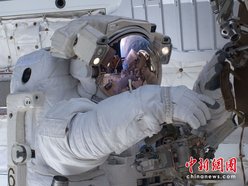 "發(fā)現(xiàn)號(hào)"宇航員太空中維護(hù)國(guó)際空間站