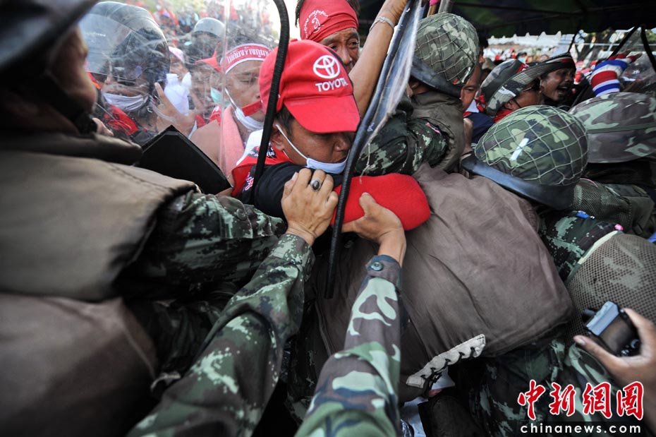 4月10日,泰國軍隊在首都曼谷對支持前總理他信的“紅衫軍”進行武力驅散,雙方爆發嚴重沖突,目前已造成18人死亡,數百人受傷。圖片來源:中國新聞網
