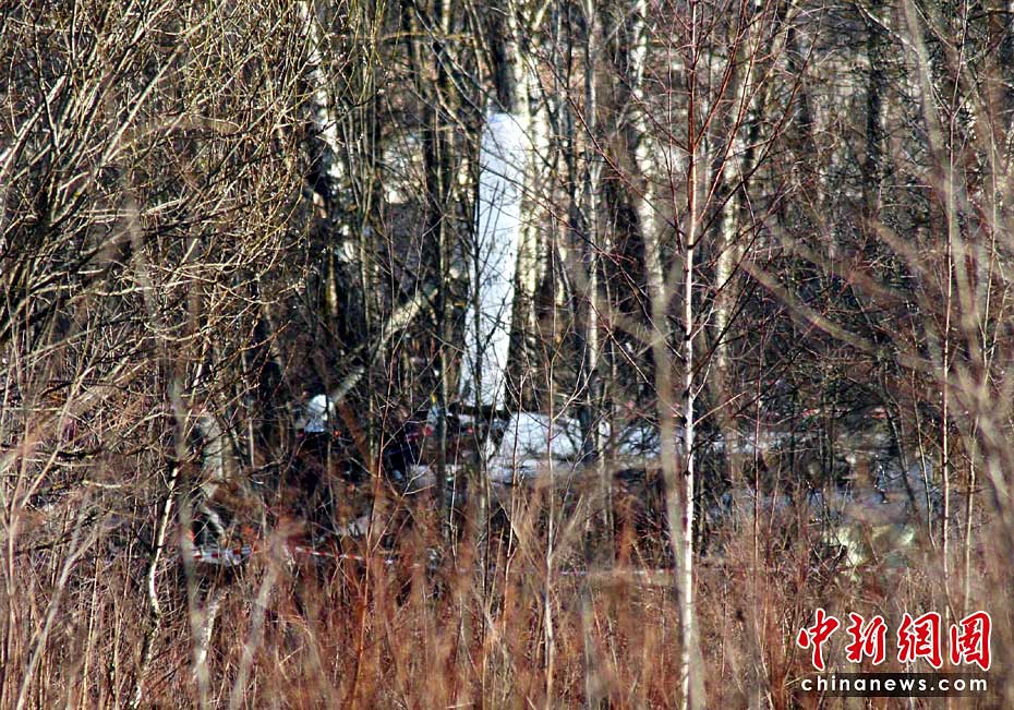 4月11日,波蘭總統卡欽斯基專機在俄羅斯斯摩棱斯克軍用機場墜毀地點附近的道路開通,但是警戒線核心區仍然關閉。俄波調查人員正在現場工作。圖片來源:中國新聞網