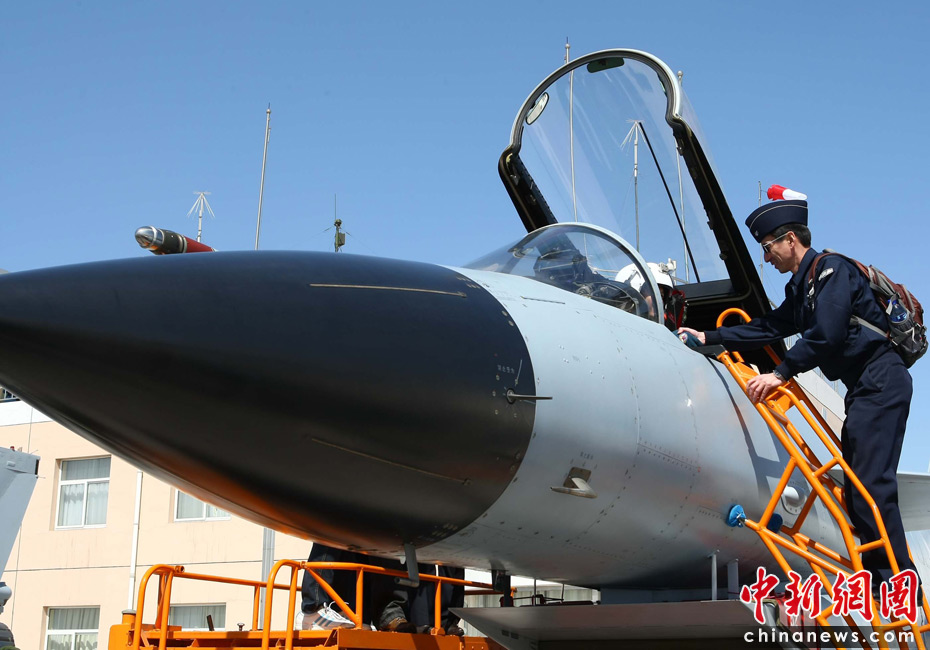 4月13日,47國駐華武官參觀了空軍航空兵某師新?lián)Q裝的殲十戰(zhàn)機(jī)飛行表演,并登上駕駛艙與飛行員零距離接觸。圖片來源:中國新聞網(wǎng)