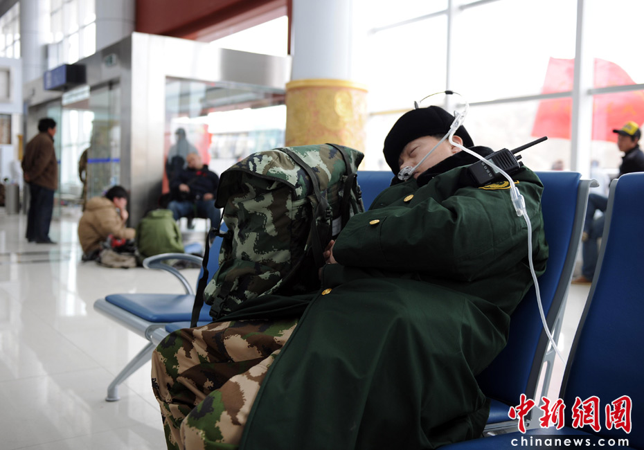 15日青海玉樹地震救援進(jìn)入第二天,各方救援人員不斷趕來。由于玉樹縣海拔高達(dá)4000米,許多外地救援者一時(shí)難以適應(yīng)。記者救援現(xiàn)場了解到,一些救援者出現(xiàn)身體不適,而目前災(zāi)區(qū)又缺乏抗高原反應(yīng)藥物。圖為一位救援人員在玉樹機(jī)場大廳吸氧。中新社發(fā) 符永康 攝