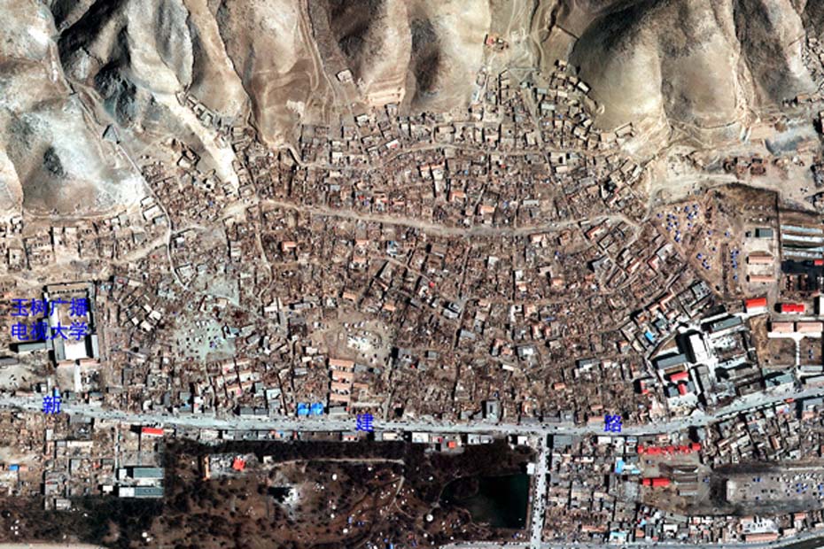 玉樹地震災區最新高分辨率遙感對比圖