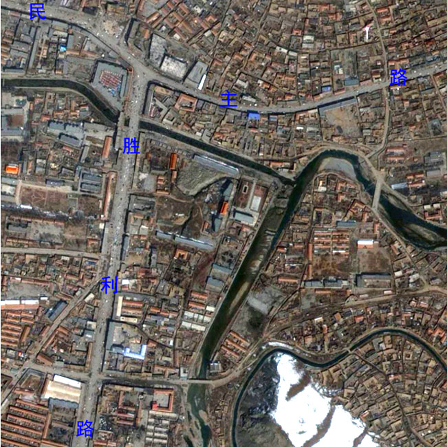 利用對地觀測中心2010年4月16日獲取的高分辨率航空遙感數據,提取出玉樹州結古鎮城區范圍內地震破壞最嚴重或典型地區,使之與GoogleEarth中相應位置的震前遙感衛星數據進行對比,直觀展現結古鎮在此次地震中的受影響程度。圖片來源:中國科學院