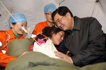 4月18日,總后青藏兵站部抗震醫療隊在青海玉樹震中結古鎮展開救援的同時,還派員向周邊牧區巡診,救治傷病員。圖為醫務人員為黃林格頭牧區索南求幾的嬰兒進行檢查和護理。據悉,這個牧區所有房屋在地震中被損毀,不少牧民在地震中受傷,目前住在搭建的帳篷里。中新社發 鄒小慶 攝
