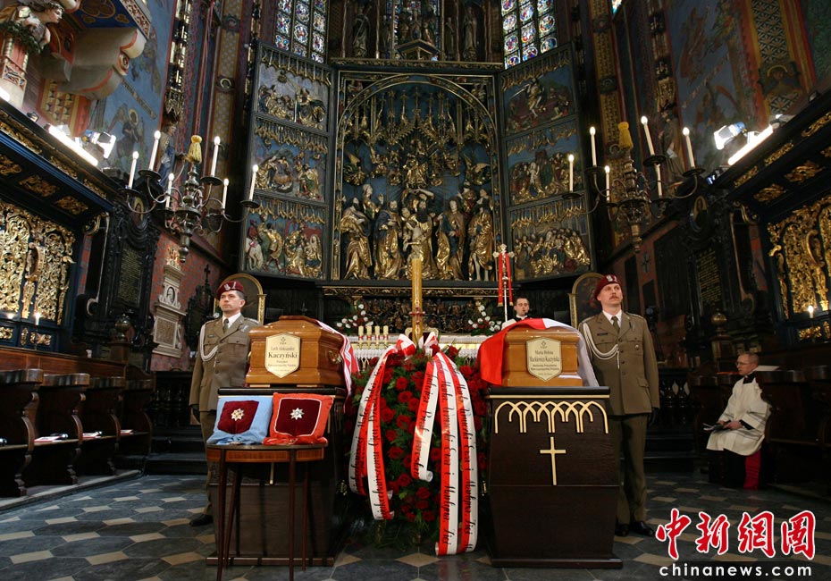 當(dāng)?shù)貢r(shí)間4月18日,卡欽斯基夫婦的葬禮在波蘭南部城市克拉科夫舉行。其后,夫婦二人的遺體將被運(yùn)往當(dāng)?shù)赜兄锨隁v史的瓦維爾宮安葬。圖片來源:中國新聞網(wǎng)