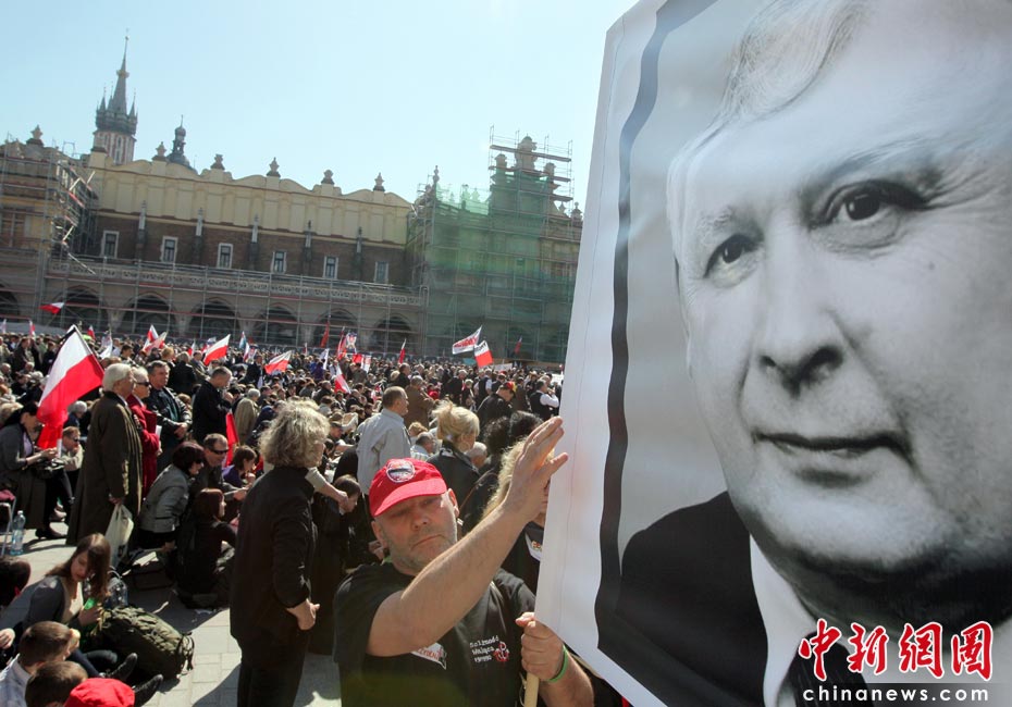 當地時間4月18日,卡欽斯基夫婦的葬禮在波蘭南部城市克拉科夫舉行。波蘭總統卡欽斯基及其夫人乘坐的專機10日在俄羅斯斯摩棱斯克失事,機上人員全部遇難。圖片來源:中國新聞網
