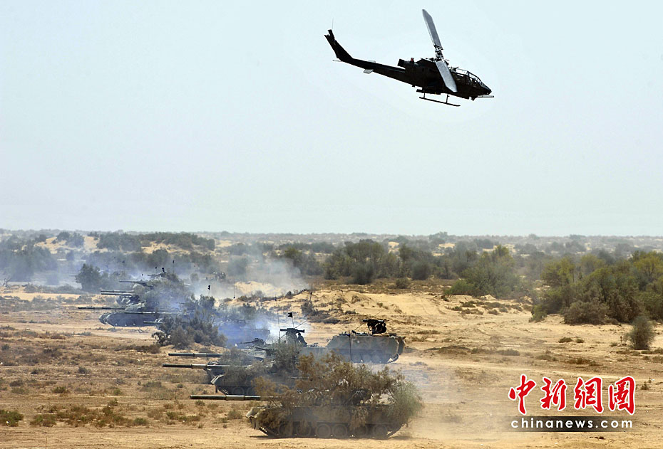 巴基斯坦軍隊4月18日出動戰機、坦克和重型火炮,在靠近印度邊界的東部沙漠地區舉行“新決心—3”軍事演習。圖片來源:中國新聞網