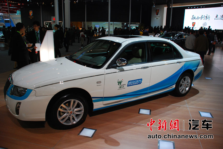 第十一屆北京國際車展23日開幕,在本屆以“暢想綠色未來”為主題的車展上,新能源車成為最大亮點。圖為上汽榮威750混合動力車 王槊 攝