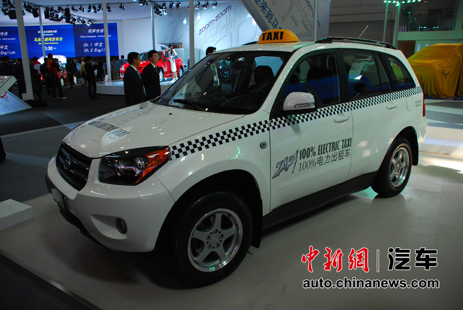 第十一屆北京國際車展23日開幕,在本屆以“暢想綠色未來”為主題的車展上,新能源車成為最大亮點。圖為永源電動出租車 王槊 攝