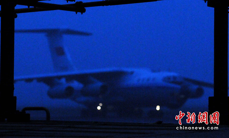 4月18日清晨6時(shí) (賈國榮)天蒙蒙亮,中新社和中新網(wǎng)從北京增援采訪青海玉樹7.1級強(qiáng)烈地震的記者組,趕赴到成都某空軍機(jī)場,搭乘中國空軍伊爾-76重型運(yùn)輸機(jī)037機(jī)群呼嘯起飛。