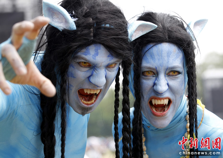 2010年4月25日,在美國首都華盛頓,兩名扮成電影《阿凡達》里納美人模樣的演員參加“氣候集會”演唱會。當天,華盛頓舉行演唱會,紀念“世界地球日”。4月22日是第41個“世界地球日”。