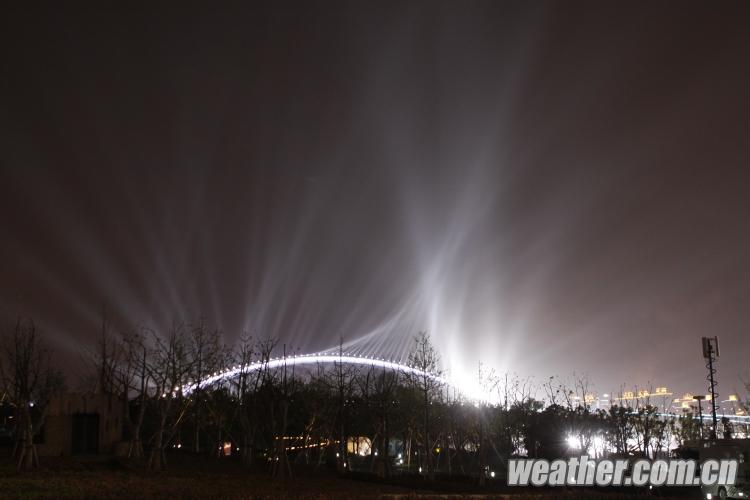 2010年4月27日,上海世博會開幕式彩排順利進行。圖為奇幻的燈光效果。卞赟 攝