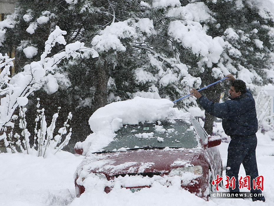 當(dāng)?shù)貢r間4月28日,美國佛蒙特州部分地區(qū)遭大雪襲擊。這場大雪給人們的出行帶來不便。圖片來源:中國新聞網(wǎng)
