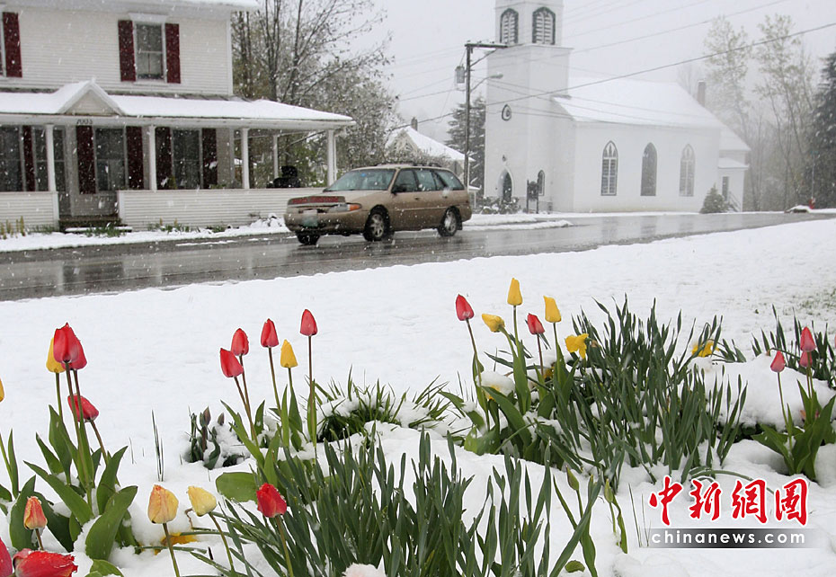 當(dāng)?shù)貢r間4月28日,美國佛蒙特州部分地區(qū)遭大雪襲擊。這場大雪給人們的出行帶來不便。圖片來源:中國新聞網(wǎng)