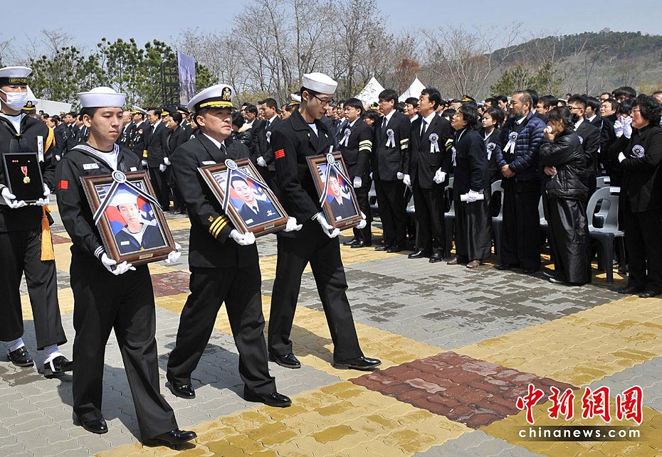 4月29日上午,韓國“天安”艦遇難官兵遺體告別儀式在平澤海軍第二艦隊司令部安保公園舉行。韓國總統李明博攜夫人參加告別儀式。圖片來源:中國新聞網