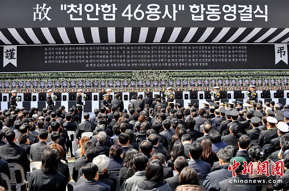 4月29日上午,韓國“天安”艦遇難官兵遺體告別儀式在平澤海軍第二艦隊司令部安保公園舉行。韓國總統李明博攜夫人參加告別儀式。圖片來源:中國新聞網