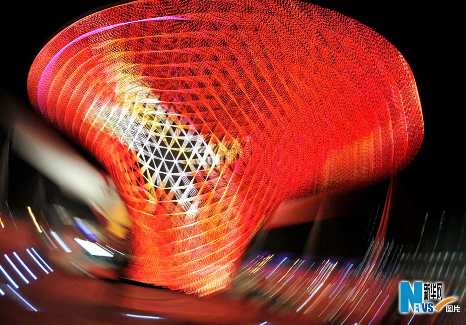 夜色下的世博園,迷離而夢幻。圖為世博軸陽光谷。圖片來源:新華網(wǎng) 郭毅攝