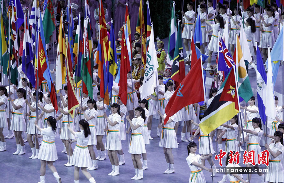 4月30日,中國2010年上海世博會開幕式在上海世博園世博文化中心舉行。圖為參展方旗幟方隊入場。中新社發(fā) 湯彥俊 攝