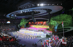 30日晚上8時,2010年上海世博會正式拉開帷幕。上海周家渡動遷居民和志愿者在中國館前打出“世博開幕啦”的大牌子,高喊:“世博開幕啦!我們開心死啦!”中新網記者 王紅綱 攝