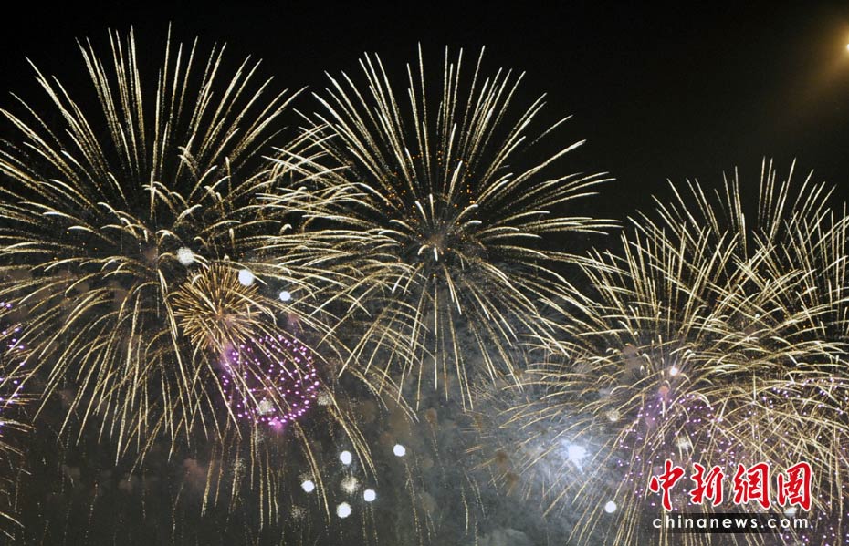 4月30日晚,2010年上海世博會(huì)開(kāi)幕式在上海世博園世博文化中心舉行。21時(shí)28分,世博會(huì)焰火燈光表演開(kāi)始。黃浦江兩岸綿延3.28公里同時(shí)奏響火樹(shù)銀花不夜天的華彩世博樂(lè)章。中新網(wǎng)記者 王紅綱 攝