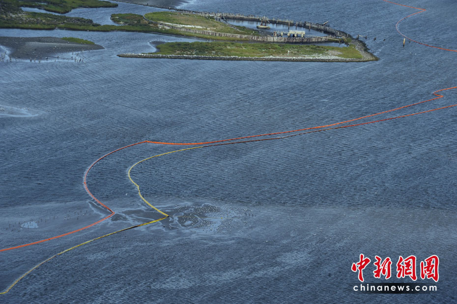 4月30日,在美國路易斯安那州海岸,為阻隔原油擴(kuò)散而設(shè)的護(hù)欄帶被海風(fēng)浪沖到岸邊。當(dāng)天,美國總統(tǒng)奧巴馬下令調(diào)查墨西哥灣石油鉆井平臺(tái)爆炸事件,以避免將來類似事件再次發(fā)生。平臺(tái)爆炸沉沒后泄漏的原油當(dāng)天已漂至美國沿岸。圖片來源:中國新聞網(wǎng)