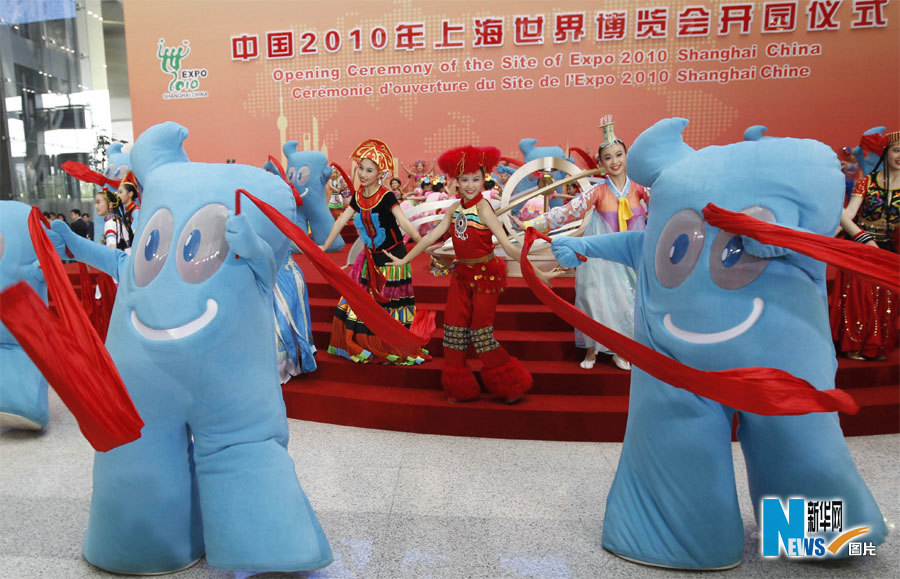 5月1日,中國2010年上海世博會(huì)開園儀式在上海世博園世博中心舉行。這是小朋友們?cè)陂_園儀式上表演。裴鑫攝(新華網(wǎng))