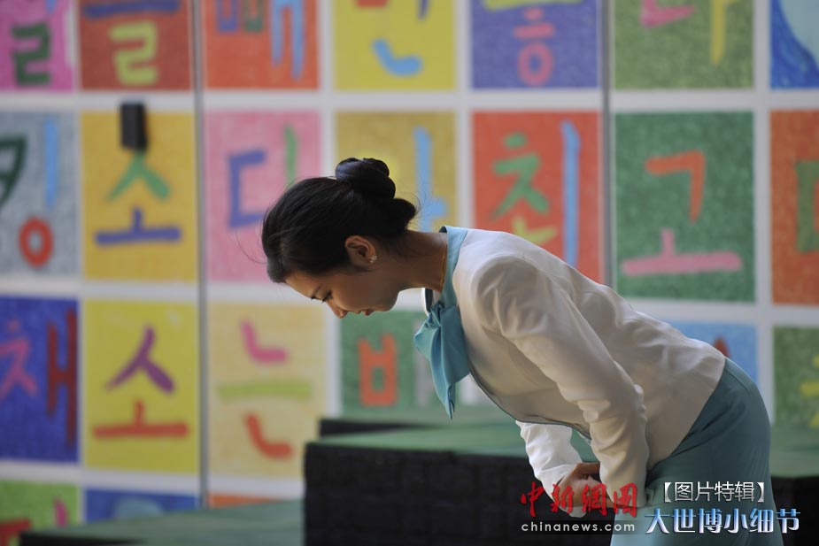 5月1日,上海世博會正式開園,當(dāng)日有20萬人次的游客參觀了世博園。世博首日,許許多多的小細(xì)節(jié)都帶給人一種全新的體驗。圖為韓國館禮儀小姐以甜美的笑容面對第一批進(jìn)館的游客。中新網(wǎng)記者 王紅綱 攝