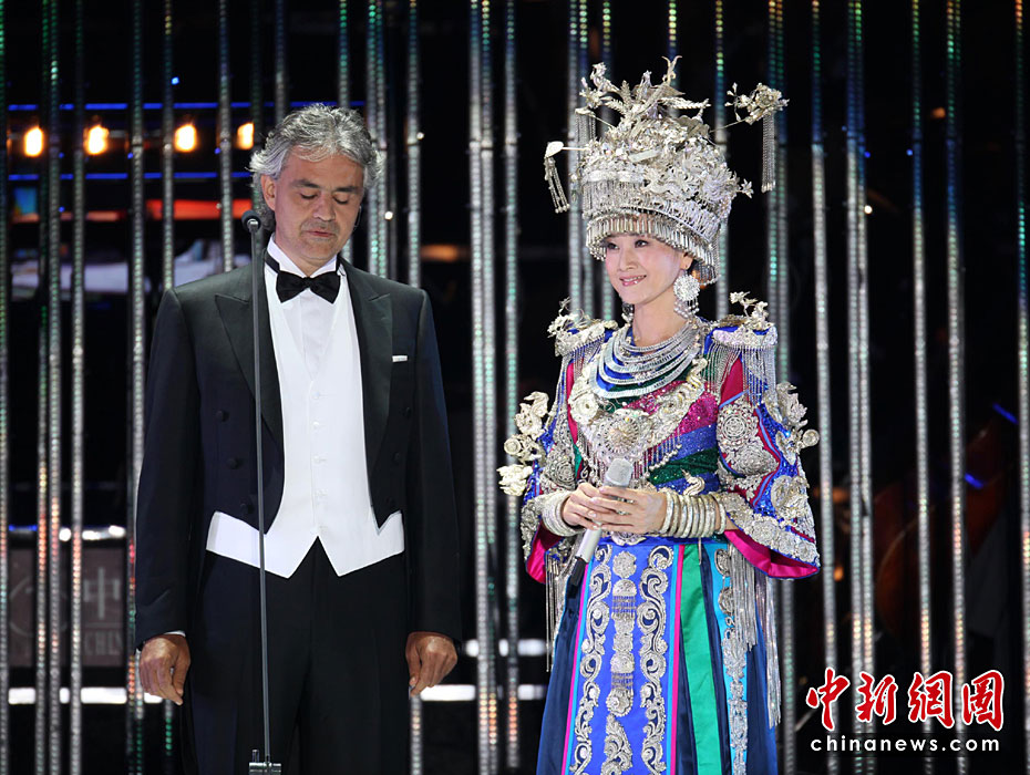 圖為宋祖英與意大利歌唱家安德烈•波切利演唱“康定情歌”。王保勝 攝