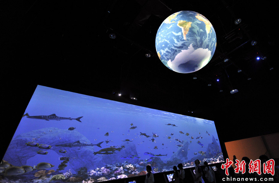 “人與海洋的和諧共存”是2012年麗水世博會的口號,在該展區(qū),游客可以通過電腦屏幕設計一條電子魚,然后“放生”到大屏幕組成的“海洋”中進行水質監(jiān)測,這些互動內容都引發(fā)游客極大的興趣。中新網記者 王紅綱 攝