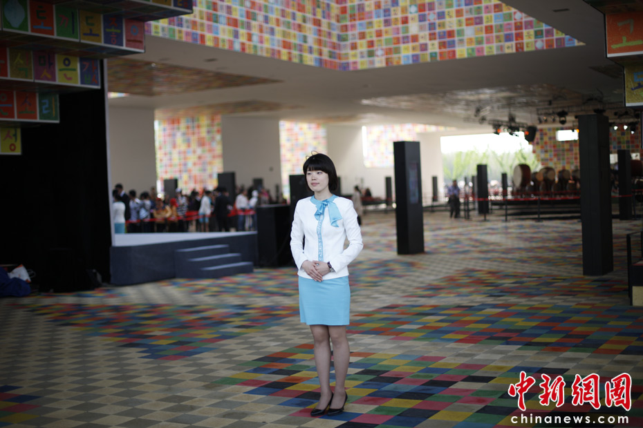 溫柔美麗的韓國館禮儀小姐。中新網記者 盛佳鵬 攝