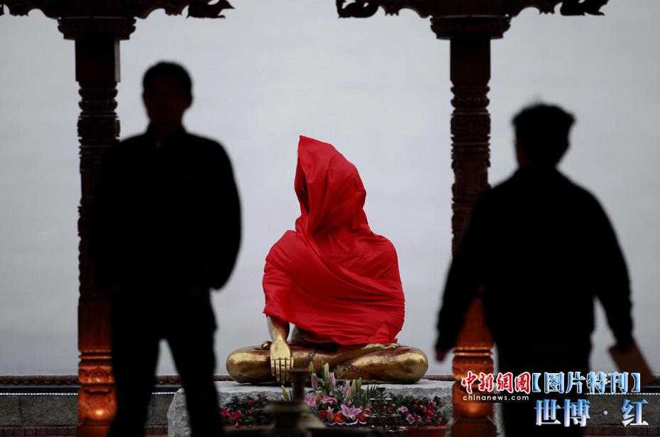 紅色象征著熱量與活力,紅色也象征著興奮與激情,在世博園區(qū)內(nèi)游覽,總會有一抹濃艷的紅色闖入到記者鏡頭之中,讓世博變得更加火辣。圖為尼泊爾館的佛像。中新社記者 盛佳鵬 攝