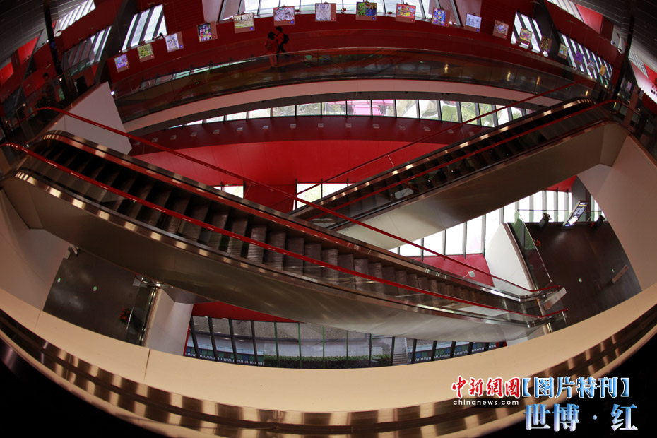 紅色象征著熱量與活力,紅色也象征著興奮與激情,在世博園區內游覽,總會有一抹濃艷的紅色闖入到記者鏡頭之中,讓世博變得更加火辣。圖為中國館的扶梯。中新社記者 盛佳鵬 攝