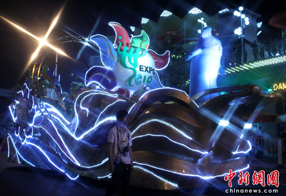 5月2日晚,由一輛輛充滿異域風情的花車和身著盛裝的表演者組成的“歡樂盛裝大巡游”在世博園區舉行。中新網記者 蘇丹 攝