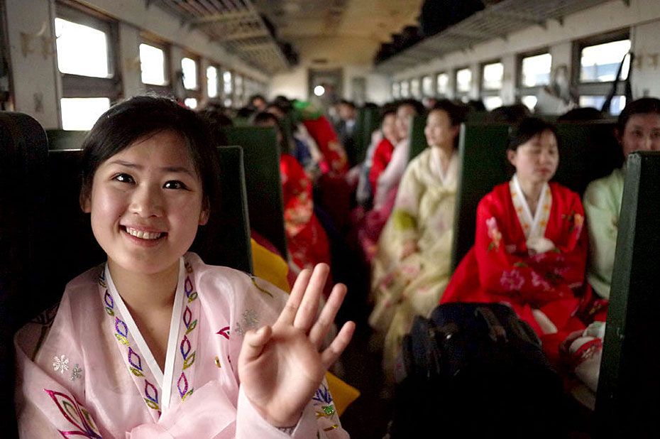 5月2日,載著198名朝鮮紅樓夢(mèng)劇組演員的專列駛?cè)氲|口岸。由朝鮮國(guó)家級(jí)藝術(shù)團(tuán)-血海歌劇團(tuán)創(chuàng)作的歌舞劇《紅樓夢(mèng)》將于5月6日至9日登陸北京電視臺(tái)大劇院,這個(gè)超大演員陣容亦創(chuàng)下近年來(lái)華國(guó)外演出人數(shù)之最。圖片來(lái)源:新華網(wǎng)