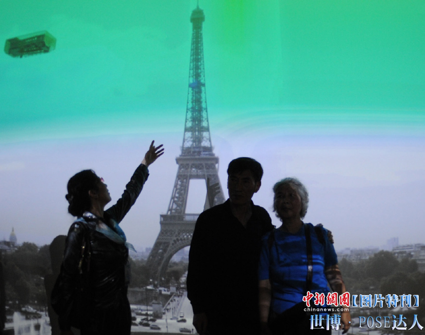 逛世博一定會拍照留念,擺一個漂亮有創意的pose尤為重要。面對著鏡頭,挺胸收腹翹臀,一個微笑,一個手勢,秀出自己的活力。心中一定要默念:“我留下的不是照片,是心情!”圖為中國游客擺出高難度pose,想和法國館的“埃菲爾鐵塔”比高。中新社發 廖攀 攝