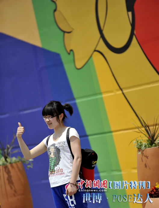 逛世博一定會拍照留念,擺一個漂亮有創(chuàng)意的pose尤為重要。面對著鏡頭,挺胸收腹翹臀,一個微笑,一個手勢,秀出自己的活力。心中一定要默念:“我留下的不是照片,是心情!”非洲聯(lián)合館前,一個女擺出“我最棒”的經(jīng)典pose。中新網(wǎng)記者 王紅綱 攝