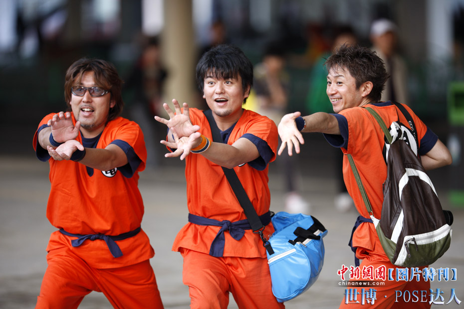 逛世博一定會拍照留念,擺一個漂亮有創(chuàng)意的pose尤為重要。面對著鏡頭,挺胸收腹翹臀,一個微笑,一個手勢,秀出自己的活力。心中一定要默念:“我留下的不是照片,是心情!”圖為日本館工作人員擺出漫畫《七龍珠》里的小悟空的經(jīng)典pose。中新社記者 盛佳鵬 攝
