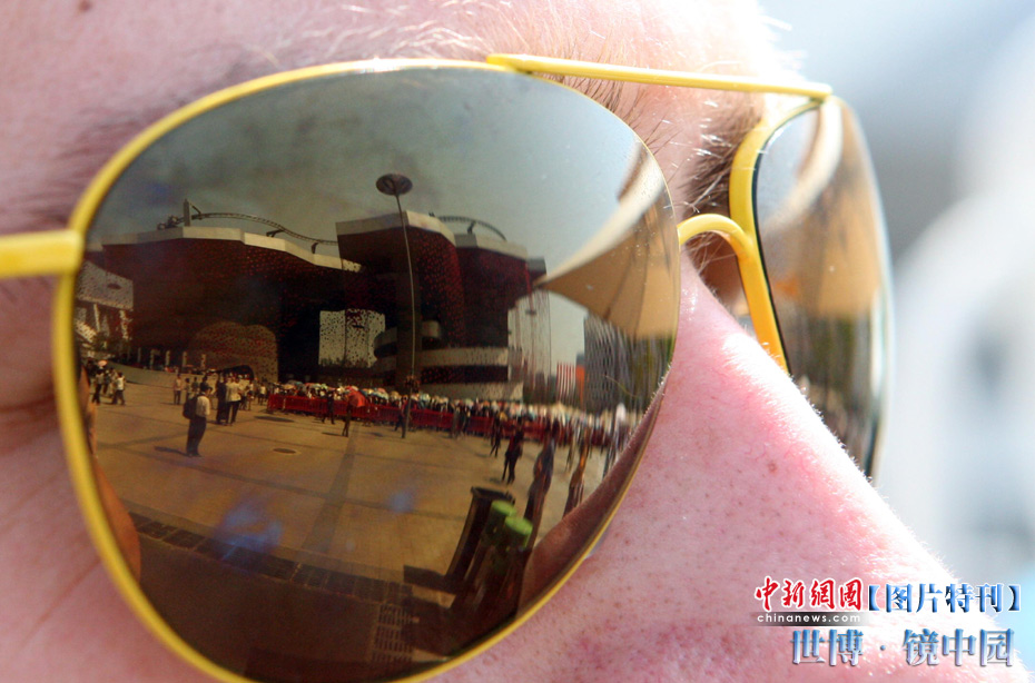 世博園開園3天,天氣一直晴熱,不少游客帶起墨鏡來遮擋刺目的陽(yáng)光,從鏡片的折射中看世博園,別有一番趣味。中新社記者 湯彥俊攝