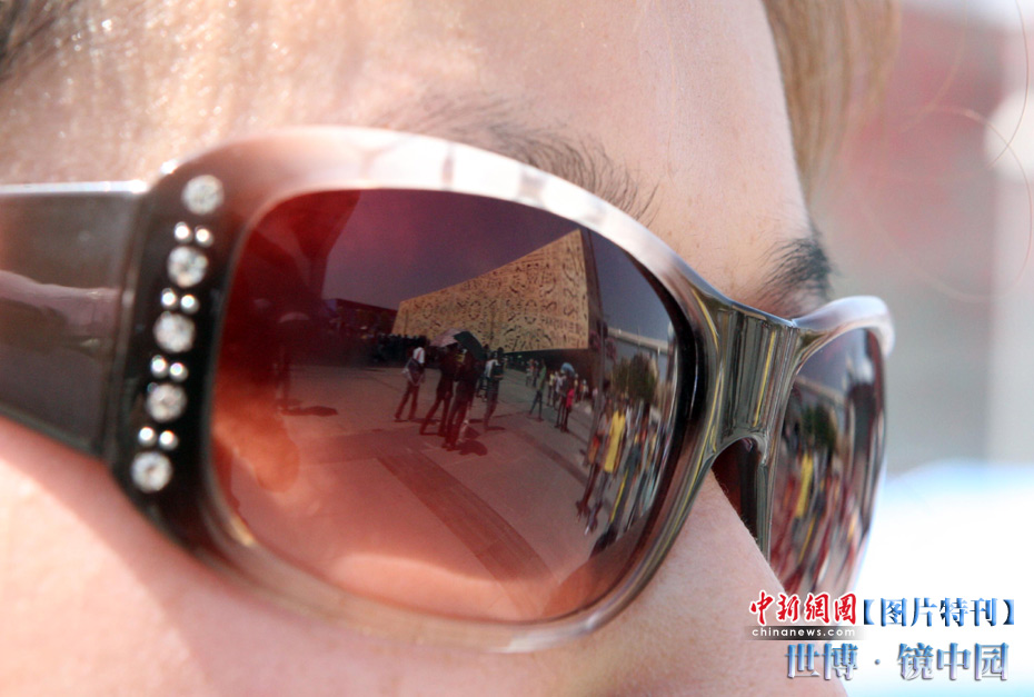 世博園開園3天,天氣一直晴熱,不少游客帶起墨鏡來遮擋刺目的陽光,從鏡片的折射中看世博園,別有一番趣味。中新社記者 湯彥俊攝