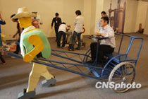 世博園慶典廣場上,積水倒映著美麗的世博軸。中新社記者 廖攀 攝